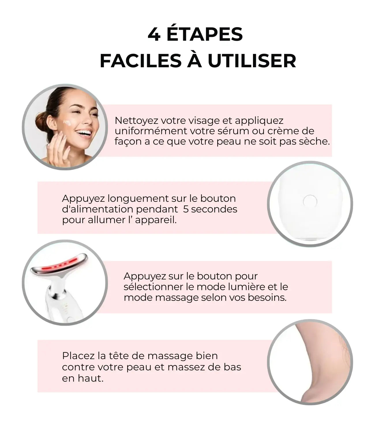 « J’ai enfin trouvé un appareil qui tient ses promesses ! Mon visage est plus tonique et lumineux, et l’effet lift se voit vraiment. Facile à utiliser, je l’adore ! »