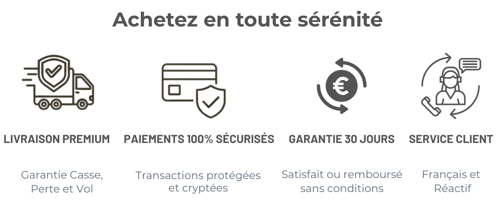 La livraison à domicile est offerte. Le délai d'expédition varie de 24h à 48h et la livraison est estimé entre 4 à 5 jours ouvrés.